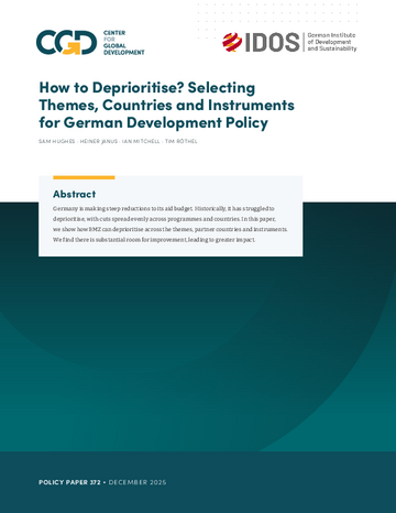 How to deprioritise? Selecting themes, countries and instruments for German development policy