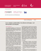Der Abbau von Mineralien und Metallen geht mit einem großen Wasserfußabdruck einher, sowohl im Hinblick auf die Ressourcen, die für den Abbau selbst benötigt werden, als auch im Hinblick auf die Einleitung schadstoffbelasteter Abwässer in Flussläufe. Diverse politische Steuerungsinstrumente zielen darauf ab, die negative Auswirkungen des Bergbaus auf Wasserressourcen und Bevölkerungsgruppen zu mildern, welche von diesen Ressourcen abhängig sind. Hierzu gehören Umweltverträglichkeitsprüfungen (UVPs), die Einbindung von Stakeholdern in Planungsprozesse sowie ökonomische Anreize für Abwasserbehandlung noch auf dem Minengelände. Ob und wie diese Instrumente umgesetzt werden, hängt vom nationalen, regionalen und lokalen Kontext ab, da jedes Instrument auf einer Reihe von Voraussetzungen aufbaut. Um die Wirksamkeit dieser Instrumente zu beurteilen, bedarf es daher einer fundierten Analyse des Governance-Systems, in dem sie eingesetzt werden.