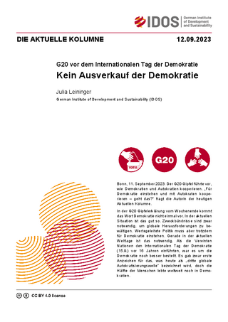 Bonn: German Institute of Development and Sustainability (IDOS), Die aktuelle Kolumne vom 12.09.2023