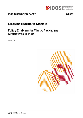 In recent years, global production of plastics has surged and is expected to increase further over the following years, with over a quarter being attributed to plastic packaging. Plastic packaging poses environmental risks due to the fossil fuels consumed in its production and the impact on eco-systems due to its inappropriate disposal. A large share of mismanaged plastic waste can be attributed to a few developing and emerging countries (DECs) in Asia. Their expected income and population growth, as well as associated increase in consumption and urbanisation, is expected to further strain inadequate waste management systems. In response, young ventures offering circular business models in packaging have emerged to tackle plastic packaging pollution. These ventures are embedded in an entrepreneurial ecosystem in which policies are, among others, determining enablers, and policy-makers have a key role in setting optimal framework conditions for circular business models in packaging to succeed. At the same time, policy agendas that address resource efficiency and the circular economy are on the rise in multiple DECs. For this reason, this paper addresses the question of the extent to which existing policies are supporting and enabling circular business models. This paper first discusses opportunities, risks, and challenges of existing circular business models in packaging in terms of waste hierarchy levels – reducing and dematerialising, reusing and refilling, replacing, and recycling – before examining the entrepreneurial ecosystems in which they operate. With a focus on policy as an enabler for circular business models in packaging, a holistic overview of possible policies in the circular packaging context is provided. Against this conceptual background, India is examined as a case-study. In recent years, multiple Indian start-ups have emerged, offering reusable packaging solutions or bio-based packaging alternatives, while other ventures seek to improve waste management and recycling. India’s previously introduced policies, including the Plastic Waste Management Rules, Swacch Bharat Mission, extended producer responsibility and a ban on single-use plastic, are the first stepping stones towards an enabling ecosystem for circular business models in packaging. However, this paper points out further opportunities – so far, India’s key policies have been addressing the downstream on the macro level. This study showed that macro-level policies need further enforcement and should be complemented by upstream policies. Meanwhile, meso-level and micro-level policies have been rather neglected. Policy-makers and development cooperation are encouraged to take action now, given the limited window of opportunity to establish a supporting framework for circular economies in development policy.