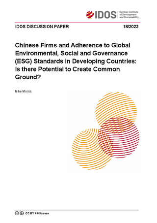This paper focuses on analysing how Chinese firms operate in Latin America, Asia and Africa in regard to ESG (environmental, social and governance) standards and sustainability issues. How do they respond to the increasing global value chain requirement to incorporate and maintain ESG standards? Is their space for an alignment between Western development cooperation ESG policies, frameworks, strategies and practices and Chinese political and economic stakeholders in the developing world? The paper uses a variety of case studies covering Chinese firms (disaggregated into SOEs (state-owned enterprises) and large, medium and small private sector firms) operating in various sectors in countries across the developing world. It uses a three dimensional framework to analyse different types of Chinese firms in terms of value chain operations covering many of the ESG standards they are required to meet: