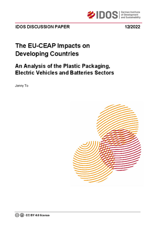 The European Union Circular Economy Action Plan (EU-CEAP) is key to transitioning to a circular economy and climate neutrality under the EU Green Deal – and developing and emerging countries (DECs) play important roles. They are essential for primary material chains, for example, for electric vehicle batteries. DECs are also part of secondary material chains, and Europe relies on them to recycle its plastic packaging. Despite the crucial roles that DECs play in Europe’s transition to a circular economy, literature and policy discourses have not yet examined the EU-CEAP’s impact. This discussion paper fills this gap by outlining the EU-CEAP’s challenges and opportunities for DECs and presents recommendations for development cooperation.