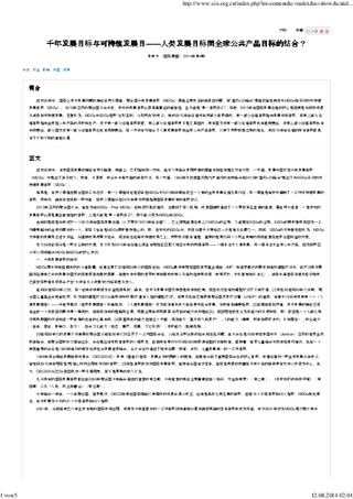 千年发展目标与可持续发展目——人类发展目标同全球公共产品目标的结合?