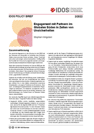 • Zugleich gibt es weitere langfristige Herausforderungen für eine global nachhaltige Entwicklung. Sie zeigen sich u.a. an innovativen Kooperationsinstrumenten im Umgang mit dem Klimawandel, insbesondere durch neue Partnerschaften (just energy transition partnerships). Kurzfristige Maßnahmen der europäischen Länder, die eine Rückkehr zu Investitionen in fossile Brennstoffe beinhalten, könnten allerdings die Legitimität untergraben, ambitionierte klimabezogene Partnerschaften zu fördern.