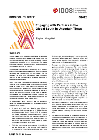 • There are also other long-term challenges in regard to global sustainable development. Take innovative cooperation instruments for tackling climate change, for instance, the most prominent of which are just energy transition partnerships (JETP). The legitimacy of efforts to promote these ambitious cooperation initiatives could be undermined by European countries introducing short-term measures that involve a return to fossil fuel investment.