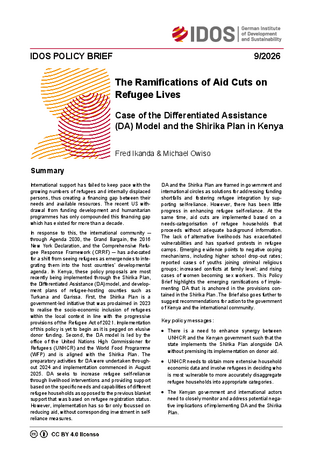 DA and the Shirika Plan are framed in government and international circles as solutions for addressing funding shortfalls and fostering refugee integration by supporting self-reliance. However, there has been little progress in enhancing refugee self-reliance. At the same time, aid cuts are implemented based on a needs-categorisation of refugee households that proceeds without adequate background information. The lack of alternative livelihoods has exacerbated vulnerabilities and has sparked protests in refugee camps. Emerging evidence points to negative coping mechanisms, including higher school drop-out rates; reported cases of youths joining criminal religious groups; increased conflicts at family level; and rising cases of women becoming sex workers. This Policy Brief highlights the emerging ramifications of implementing DA that is anchored in the provisions contained in the Shirika Plan. The Brief also goes further to suggest recommendations for action to the government of Kenya and the international community.