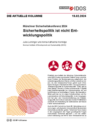 Bonn: German Institute of Development and Sustainability (IDOS), The Current Column of 21 February 2024