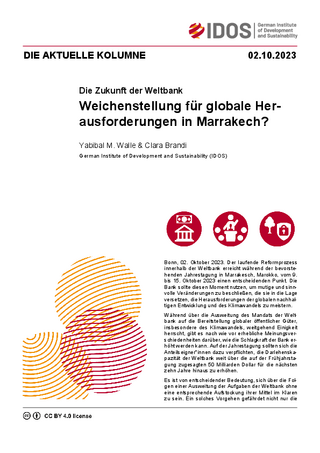 Bonn: German Institute of Development and Sustainability (IDOS), The Current Column of 2 October 2023