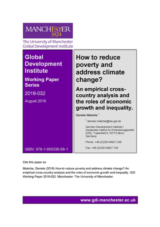 How can countries eradicate poverty while also addressing climate change? Despite the necessity to deal with both issues simultaneously, no study has analysed the empirical relationship between the two aforementioned goals and the factors that drive these interlinkages. This paper addresses this gap in the literature, and the initial research question, by developing a framework to analyse this relationship and its drivers. It then econometrically tests the propositions derived from the framework, using data from 135 developed and developing countries. The paper’s findings show that the carbon intensity of poverty reduction (CIPR), defined as the ratio between proportional changes in emissions levels and the share of the population above the poverty line, is heterogeneous across countries. This heterogeneity is partly explained by economic growth, which is found to have a negative effect on the CIPR up to a certain income level, defined here as a ‘turning point’. Above that turning point, economic growth increases the CIPR. By contrast, inequality reduction is shown to have an unambiguous negative effect on the CIPR. The results are robust for different poverty lines and different model specifications. In addition, the research underlines the
