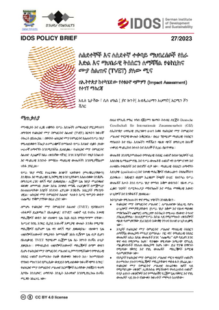 ለስደተኞች እና ለስደተኛ ተቀባይ ማህበረሰቦች የስራ እድል እና ማህበራዊ ትስስርን ለማሻሻል የቴክኒክና ሙያ ስልጠና (TVET) ያለው ሚና፡፡ በኢትዮጵያ ከተካሄደው የተፅዕኖ ግምገማ (Impact Assessment) የተገኘ ማስረጃ