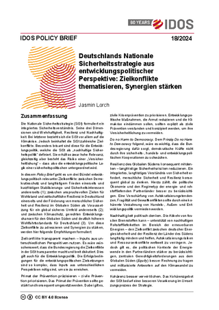 Die Nationale Sicherheitsstrategie (SiSt) formuliert ein integriertes Sicherheitsverständnis. Seine drei Dimensionen sind Wehrhaftigkeit, Resilienz und Nachhaltigkeit. Bei letzterer bezieht sich die SiSt vor allem auf die Klimakrise. Jedoch beinhaltet die SiSt zahlreiche Zielkonflikte. Besonders brisant sind diese für die Entwicklungspolitik, welche die SiSt als „nachhaltige Sicherheitspolitik“ definiert. Sie erhält so zwar hohe Relevanz, gleichzeitig aber besteht das Risiko einer „Versicherheitlichung“ – dass also die entwicklungspolitische Logik einer sicherheitspolitischen untergeordnet wird. In diesem Policy Brief geht es um drei Bündel entwicklungspolitisch relevanter Zielkonflikte: zwischen Demokratieschutz und langfristigem Frieden einerseits und kurzfristigen Stabilisierungs- und Sicherheitsinteressen andererseits (1); zwischen anspruchsvollen Zielen für Wohlstand und wirtschaftliche Resilienz in Deutschland einerseits und der Förderung von menschlicher Sicherheit und Resilienz im Globalen Süden als Voraussetzung für ein global sicheres Umfeld andererseits (2); und zwischen Klimaschutz, gerechten Entwicklungschancen für den Globalen Süden und deutlich höheren Wohlfahrtsstandards für Deutschland (3). Um diese Zielkonflikte zu adressieren und Synergien zu stärken, werden hier folgende Empfehlungen formuliert: