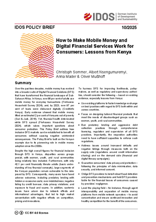 Over the past two decades, mobile money has evolved into a broader suite of Digital Financial Solutions (DFS) that have transformed the financial landscape of Sub-Saharan Africa. In Kenya, over 86 per cent of adults use mobile money for everyday transactions (FinAccess Household Survey 2024), and, by 2023, over 97 per cent of loans were disbursed digitally (Creditinfo Kenya). Early evidence showed that mobile money lifted an estimated 2 per cent of Kenyans out of poverty (Suri & Jack, 2016). Yet, financial health deteriorated while DFS spread (FinAccess Household Survey 2024), which raises important questions about consumer protection. This Policy Brief outlines how inclusive DFS markets can be established to benefit all consumers without causing negative unintended consequences. The Policy Brief is built on the Kenyan example due to its pioneering role in mobile money adoption since the 2000s.