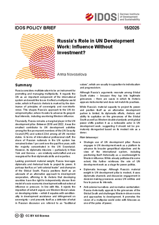 While Russia’s material capacity to project its power and position itself as an alternative development partner is limited, its diplomatic efforts, rhetoric and ability to capitalise on the grievances of the Global South as well as Western double standards amid global power shifts position it as a noticeable actor in UN development work, suggesting it should not be prematurely disregarded based on its modest role as a donor.